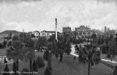 On May 3, 1901 at 12:30 p.m., a fire began at the Cleaveland Fibre Factory, ten blocks northwest of this site. Chimney embers ignited sun-dried moss to be used as mattress stuffing. Fueled by wind and dry weather, the fire roared east destroying most structures in its path. By 3:30 p.m., the fire reached this site, then called Hemming Park. The park and its renowned live oaks were devoured by the flames and only the Confederate Monument survived, its base glowing red from heat. The fire continued an eastward march to Hogan’s Creek, where a citizens’ bucket brigade stayed the flames. Then, turning south, the inferno roared to Bay Street’s riverfront docks. Extreme heat caused a waterspout in the river where rescue boats trolled for survivors. The fire was so intense, black smoke clouds could be seen as far away as South Carolina. As flames moved west on Bay Street, the firefighters’ gallant stand and dying winds brought the fire under control by 8:30 p.m. In just eight hours, nearly 10,000 people were homeless, 2,368 buildings were lost, 146 city blocks were destroyed, but miraculously only seven people perished. Jacksonville’s 1901 Fire remains the most destructive burning of a Southern city in U.S. history.