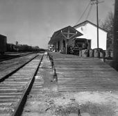 This old passenger depot, built c. 1910, is all that remains of the vast railroad complex located southwest of downtown that made High Springs a bustling railroad center for nearly 50 years. In 1895 the Plant Railroad System chose the town as the site of its divisional headquarters. Rail yards, workshops, and a roundhouse serviced hundreds of steam engines and cars sent to High Springs to be cleaned and repaired. The importance of High Springs as a rail center declined as diesel engines replaced the old steam locomotives after World War II. Gradually, all of the railroad buildings disappeared, except the depot, which was moved to this site and renovated as a railroad museum in 1994.