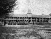 Roper Park is the original site of the parade grounds (in front of this site) and barracks (behind this site) for the East Florida Seminary, a non-sectarian educational institute and a forerunner of the University of Florida. James H. Roper (1835-1883) moved to Gainesville in 1856 and founded the first school, the Gainesville Academy. The Gainesville Academy moved to this site in 1857. Roper, a member of the State Senate in 1865-66 and the Board of Education, engineered the relocation of the East Florida Seminary to Gainesville by donating his school’s building and site in 1866. He was the president for the first two years. The barracks for the East Florida Seminary were built on this site in 1886. The two-story frame building had a double veranda along the south side, and a two-story porch surrounded an open courtyard in its center. Out-of-town students lived in 45 rooms that contained two iron beds with moss mattresses and feather pillows, a study table, a washstand, and a stove. The City of Gainesville purchased the block in 1906. In 1907, Gainesville’s mayor bought the barracks and added them to the nearby White House Hotel.