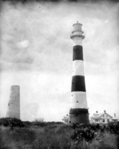 On May 21, 1838, Florida territorial delegate Charles Downing requested a lighthouse be built on Cape Canaveral. The first lighthouse completed in Jan. 1848 stood 65-feet tall, had a 55-foot tower and a 10-foot lantern room equipped with 15 lamps on 21-inch reflectors. The brick tower and keeper’s home cost under $13,300. Nathaniel Scobie oversaw construction and appointed the first keeper. With the advent of the Civil War, S. Mallory, Confederate Navy Secretary, ordered Florida east coast lighthouses “extinguished.” Keeper Mills Burnham removed the lamp and buried it in his orange grove. A state-of-the-art, 151-foot iron tower was erected in 1868 and topped with a 1st Order Fresnel lens. The tower’s living quarters were used for storage and a weather station. In 1871 a storm surge washed over the lighthouse area spoiling lamp oil and drinking water. This and shoreline erosion caused the lighthouse to be moved. From Oct. 1893 to Jul. 1894 the tower was dismantled, moved by tram one mile inland and re-erected, along with a 1st and 2nd assistant’s and keeper’s homes, to its present location. In 1939 the Coast Guard took ownership. In 2000 stewardship was transferred to the 45th Space Wing, Patrick Air Force Base.